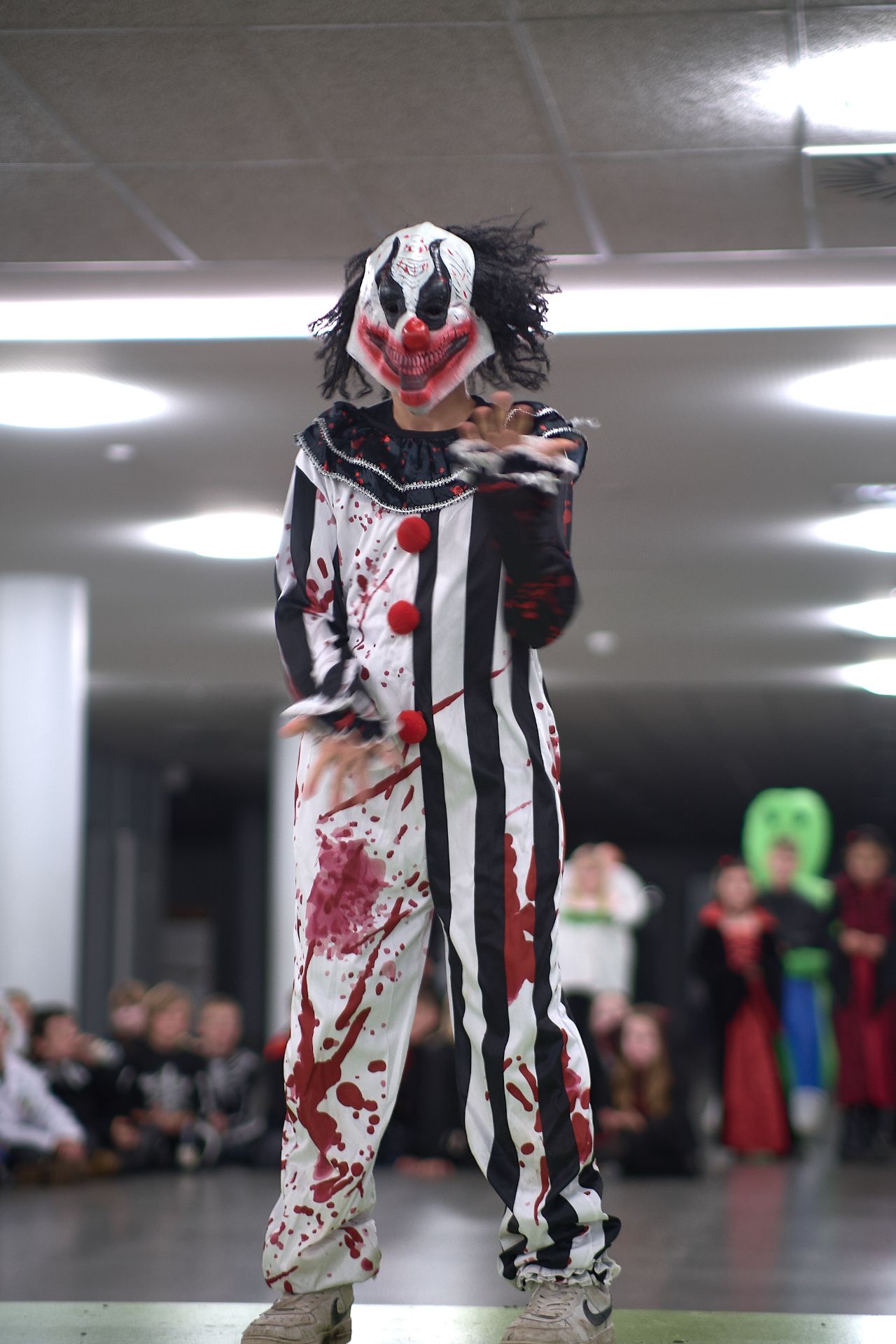 Höhepunkt der Feier war der Kostümwettbewerb. Die Klassensiegerinnen und -sieger traten auf dem Catwalk in der Schulstraße gegeneinander an und präsentierten unter großem Applaus ihre kreativen und gruseligen Verkleidungen. Eine Jury bewertete die Kostüme nach Kreativität und Originalität.