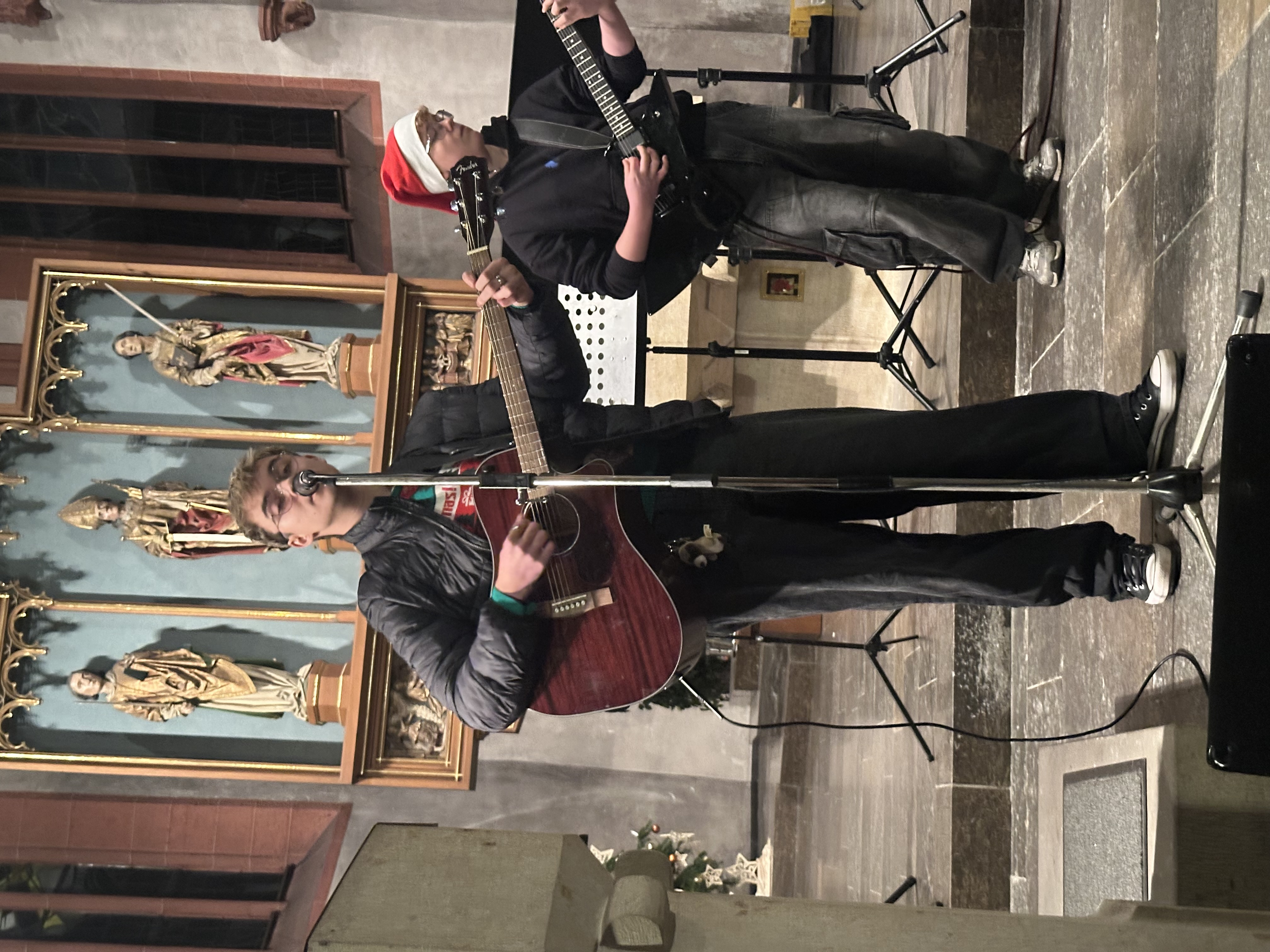 Einen besonderen musikalischen Farbtupfer bot das Streichensemble unter Leitung von Marina Andreeva, das mit Antonio Posser (10D) am Klavier Filmmusik und moderne Chorwerke wie Carol of the Bells und Lux aeterna eindrucksvoll interpretierte. Der Lehrerchor sorgte mit einem traditionellen Weihnachtslied für vertraute Klänge, bevor er gemeinsam mit dem RMG-Popchor den Abend mit dem Titel Viva la Vida schwungvoll weiterführte. Weitere moderne Weihnachtssongs wurden von den neu gegründeten Ensembles vorgetragen: Der RMG-Popchor überzeugte mit Snowman und die Schulband The RMG Christmas Singers präsentierte Happy Xmas (War Is Over) und Christmas Time.