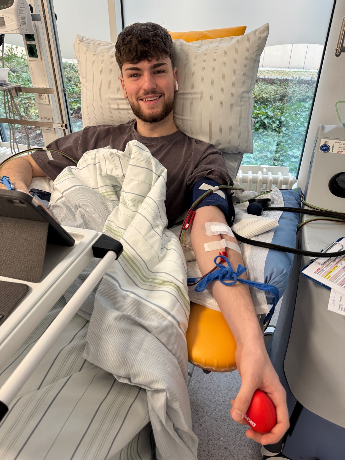 Nach einer Blutuntersuchung war dann bereits im Januar klar, dass er als Spender für eine an Blutkrebs erkrankte Person geeignet war. Und nach weiteren Telefonaten und Untersuchungsterminen fuhr Emil im Februar in Begleitung seiner Mutter in eine Klinik nach Dresden – Übernachtung und Verpflegung waren hierbei perfekt von der DKMS organisiert. Bei diesem ersten Besuch wurde er nochmals untersucht und über die genauen Abläufe informiert.